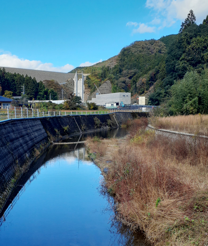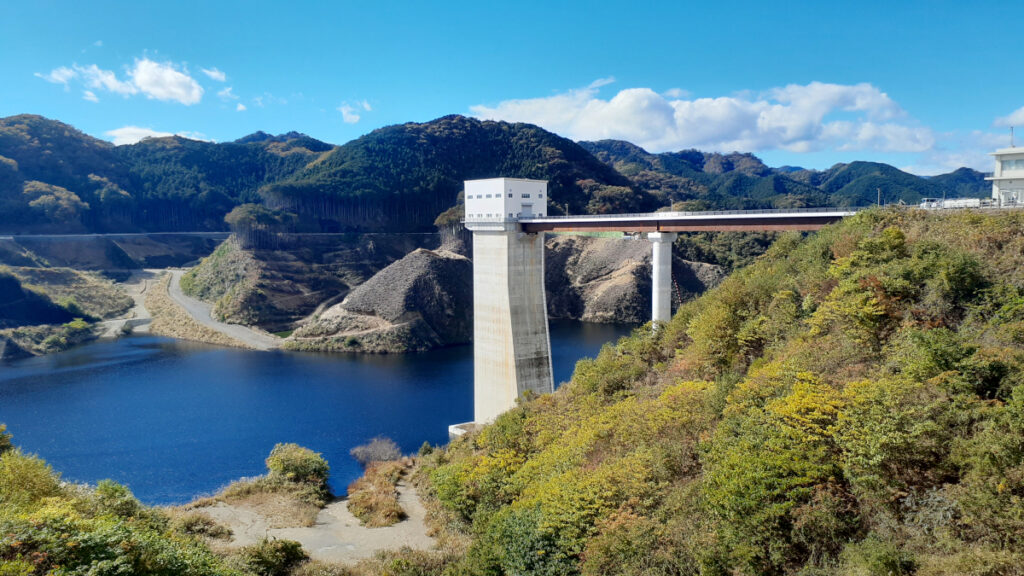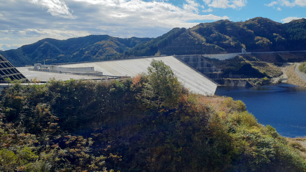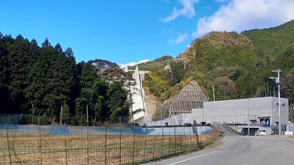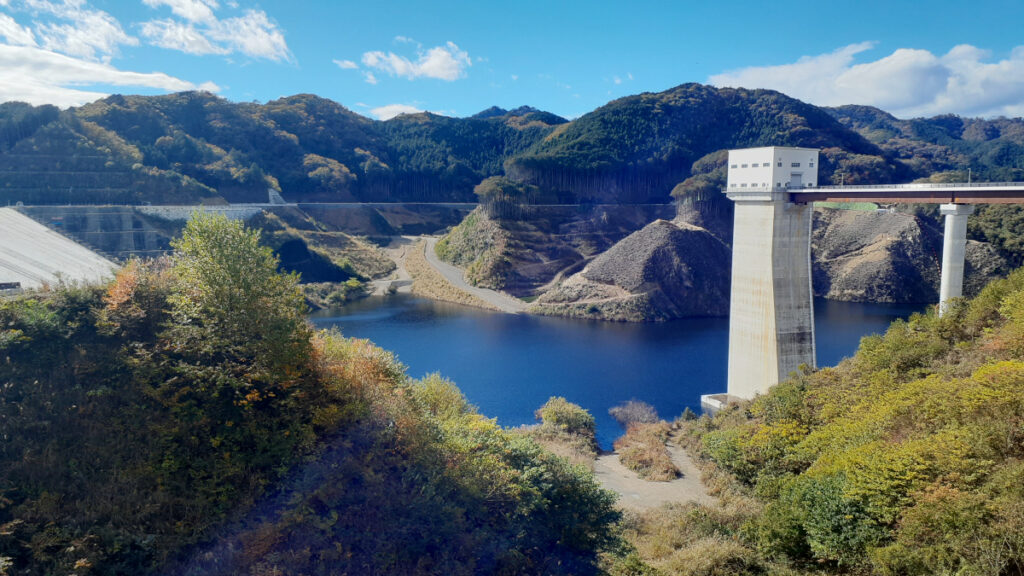 南摩ダムの完成もまじかとなったダムサイトでは、2024年11月8日に始まった試験湛水でダム湖の水位はかなり上がってきているようだ。