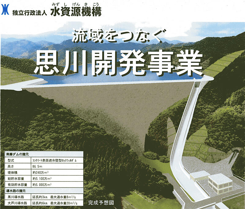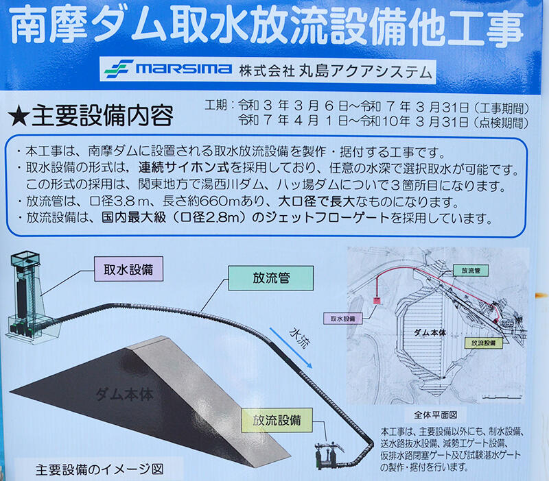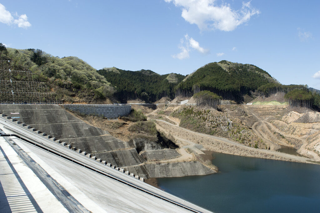 この工事は独立行政法人水資源機構によって進められており、ダム本体の工事と連動し、試験湛水が開始されています。