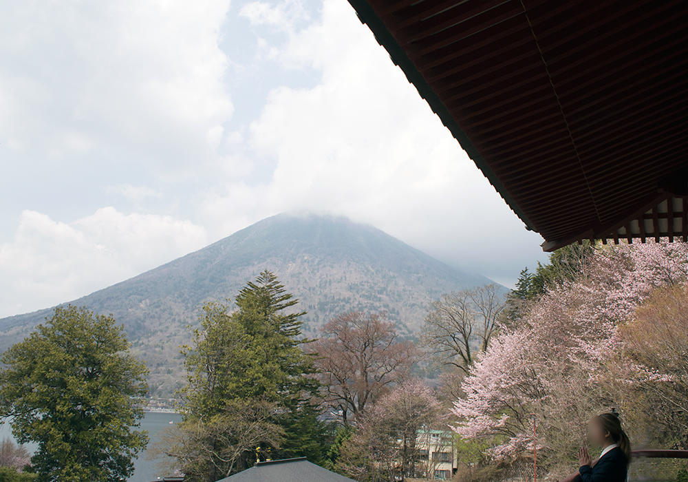 中禅寺湖の遊覧船乗り場前にある無料駐車場に車を置いて立木観音の受付で拝観券(500円)を購入。