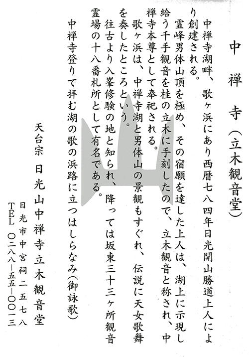 日光山中禅寺は、坂東三十三ヶ所観音霊場十八番札所です。