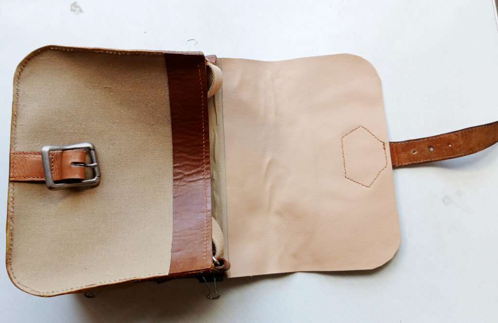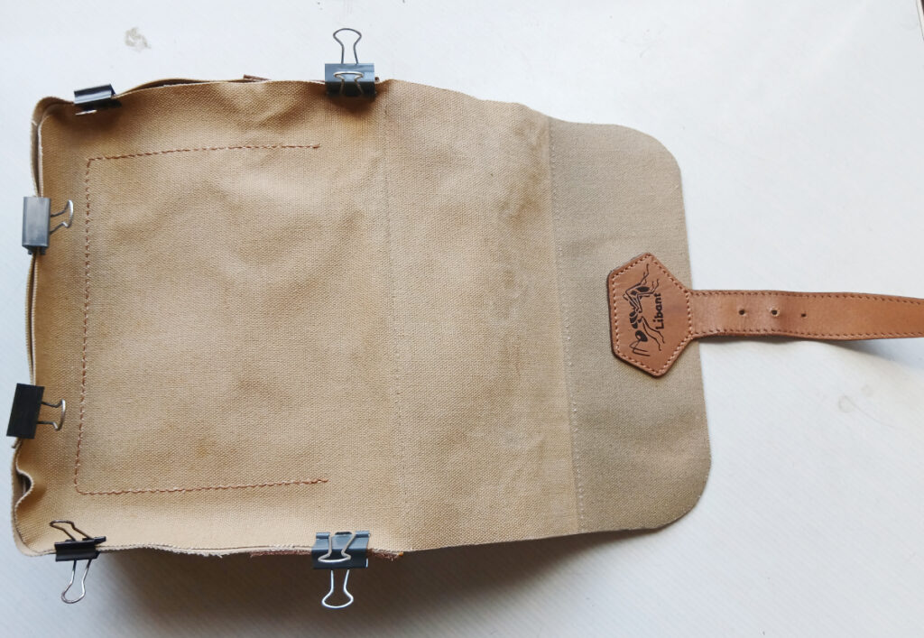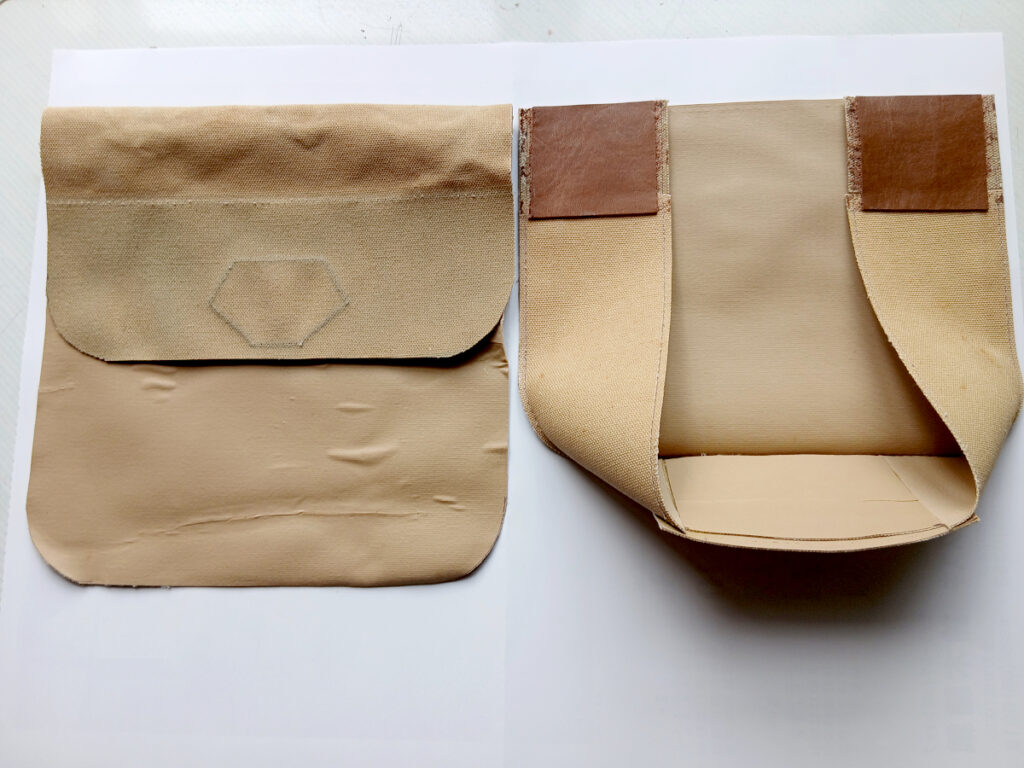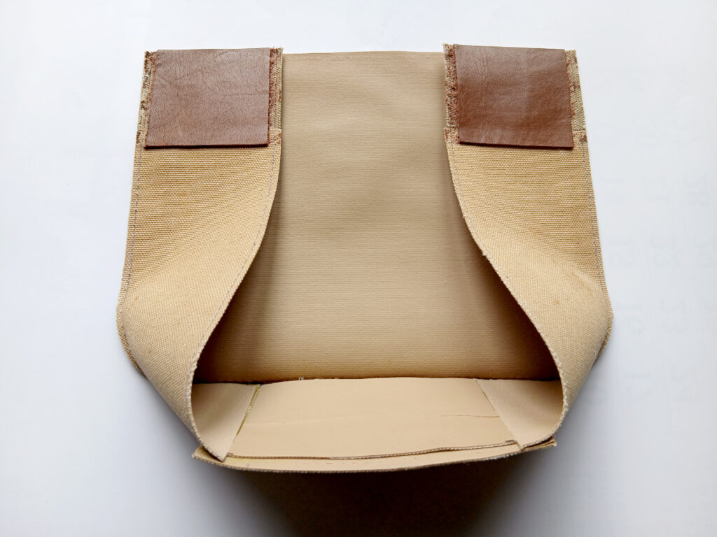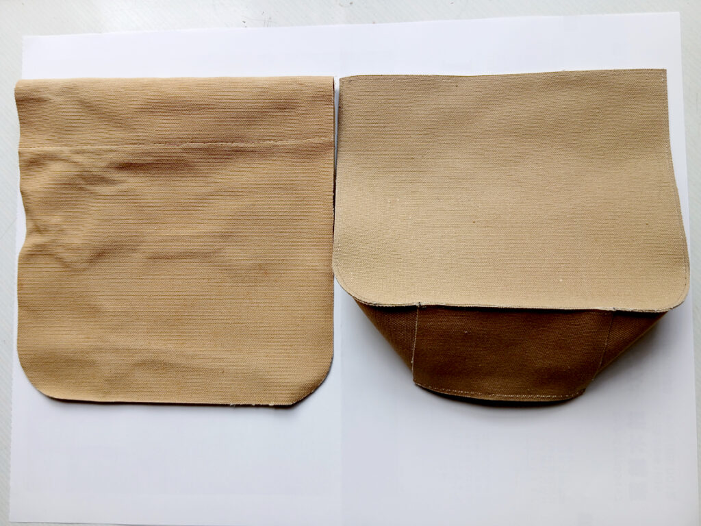 縫い合わせの部分を薄い革でコバ隠しで縫い合わせれば帆布のコバの補強を兼ねて見栄えが良くなるかもしれません。
