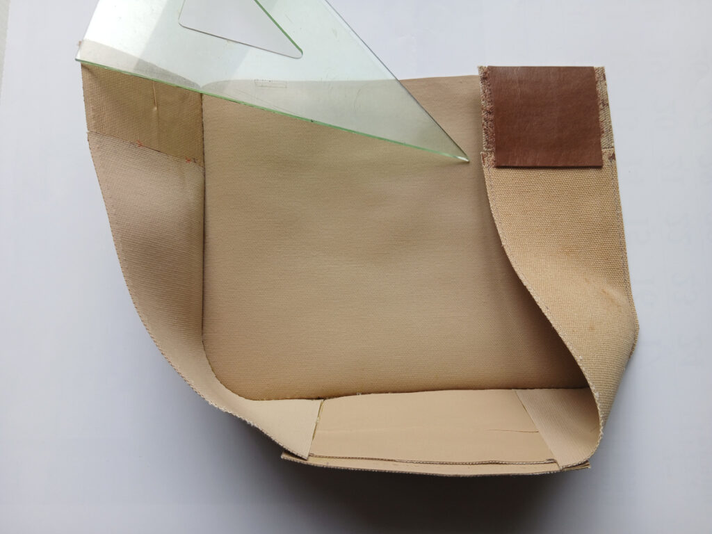 マチ部分の補強として内側に合皮補修シートを貼りました。