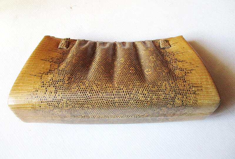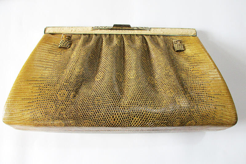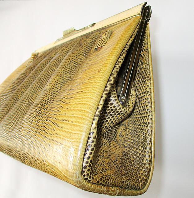 素材は、牛革に爬虫類(多分トカゲ?)の革を貼り付けた品のあるバックです。