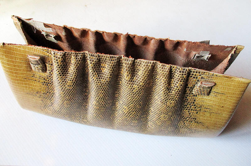 本体の表面に張られた爬虫類の革が裁断面から剥がれてきたのです。