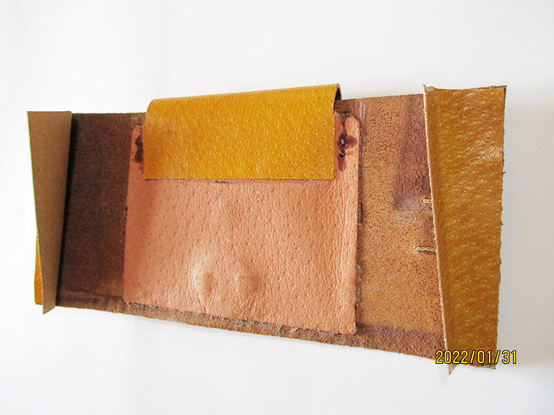 柄的に良い部分を切り取り、柔らかい牛革の裏革を本体に張り付けました。
