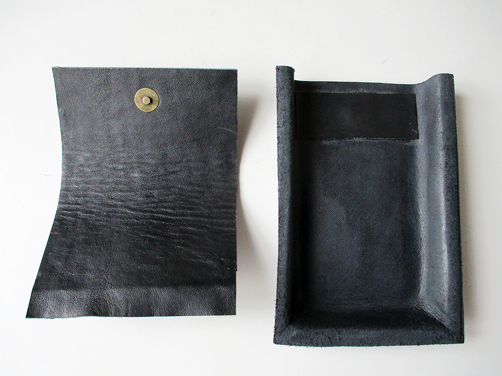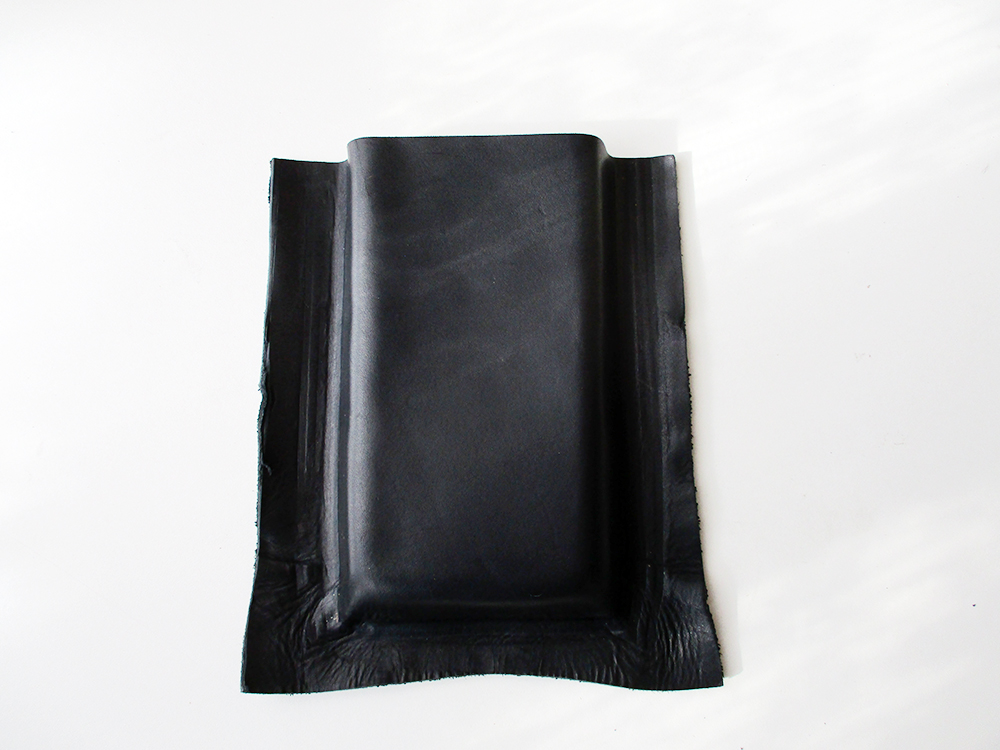 スマフォの前部分の蓋となる型取りした乾燥後の革。