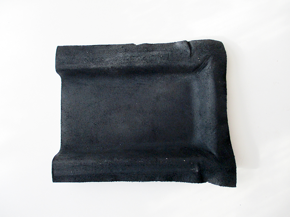 黒に着色した1.5mm厚のタンニン鞣し革(A4サイズ1枚)1,000円位。