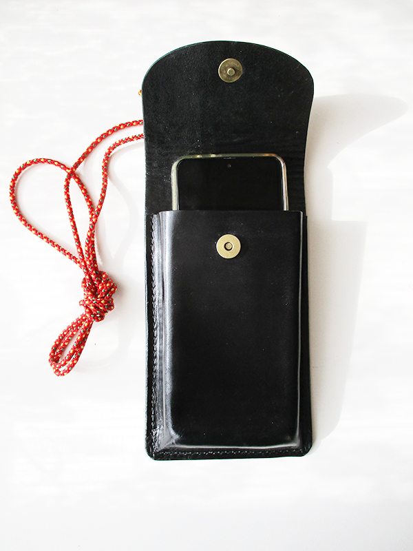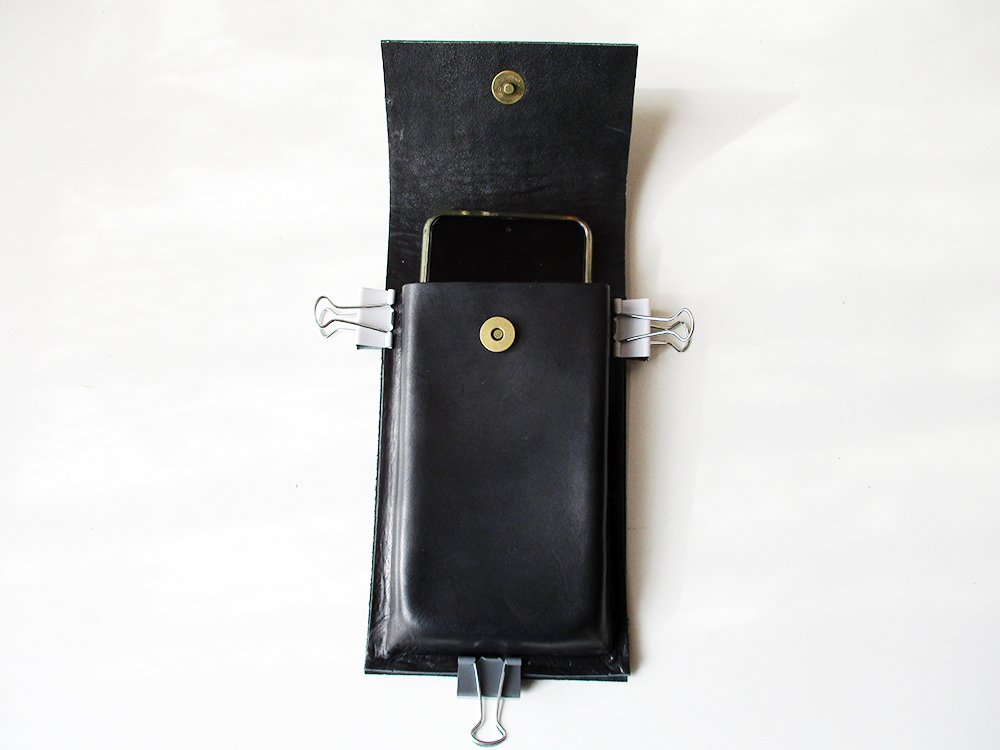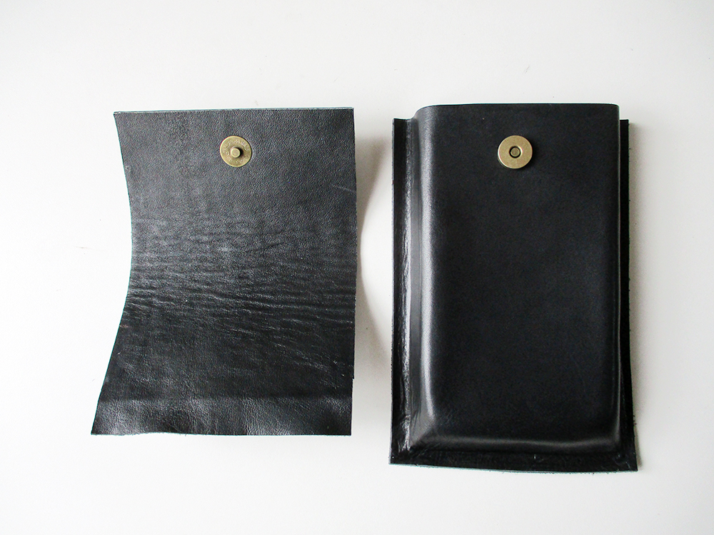下は、側面から見たスマフォケースですが、ウエットフォーミングで出来た革の撚れが気になりました。