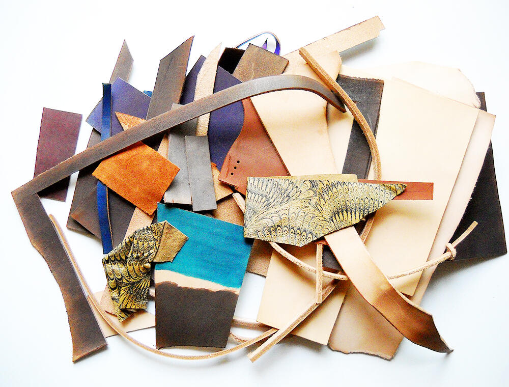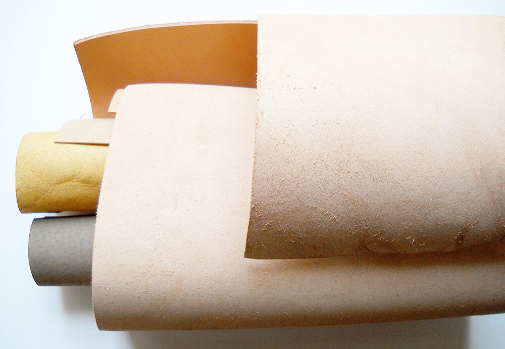 押入れの天袋の奥の方には、新聞紙に包まれたナメシ革と使い残した革がたくさん出てきました。