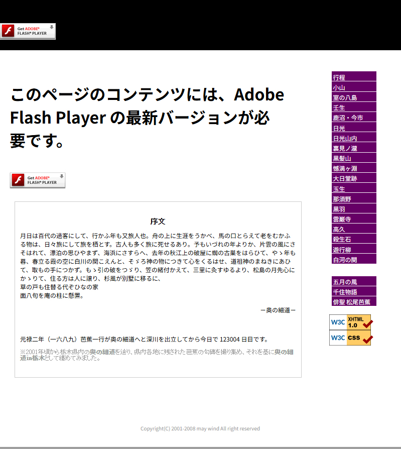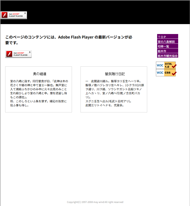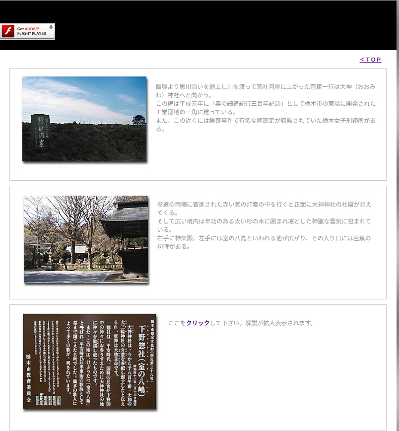 下は、当時作成した「奥の細道in栃木」サイトのトップページです。