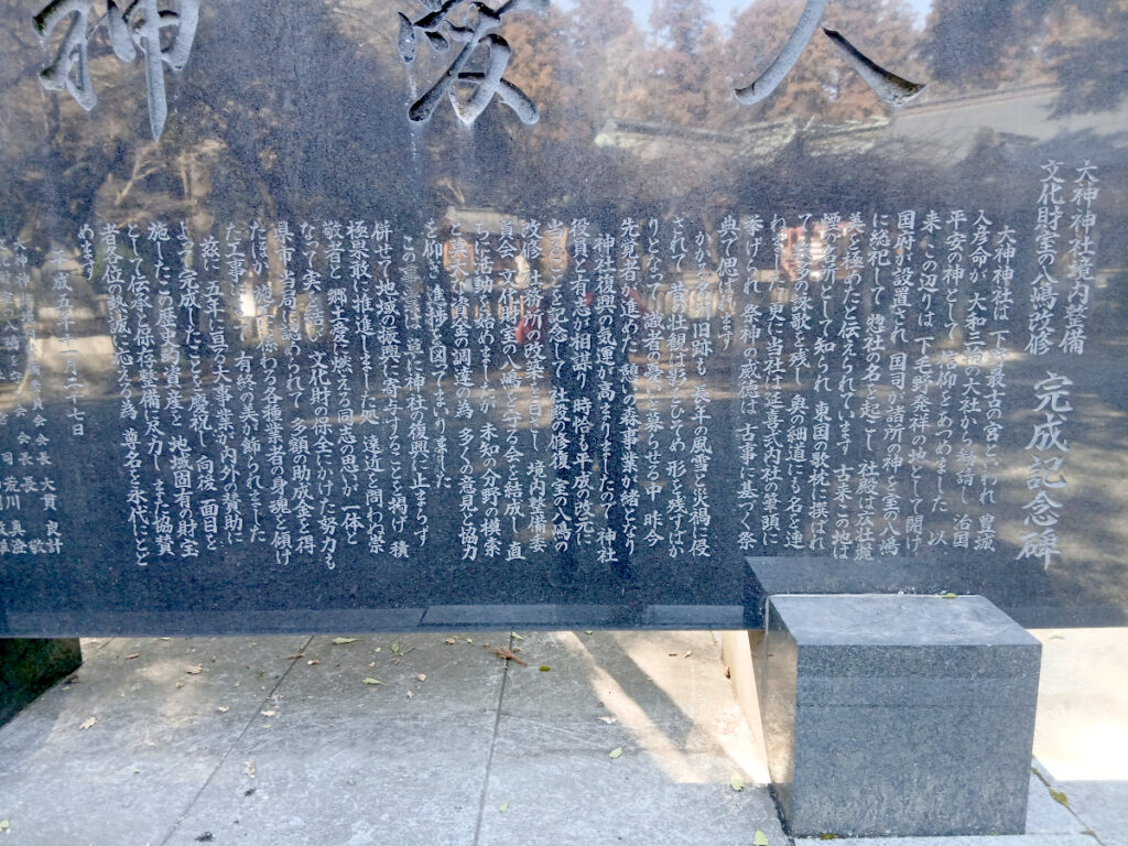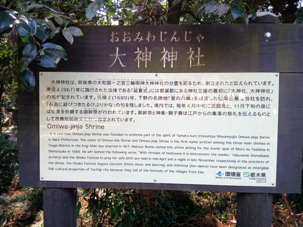 大神神社は、芭蕉の「奥の細道」で立ち寄った事で有名な神社です。