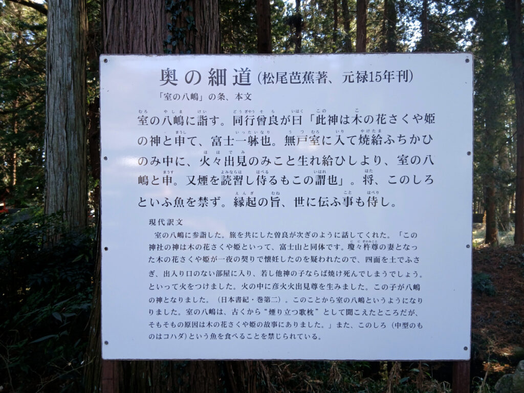下は、芭蕉が曽良と共に立ち寄った「室の八島」です。