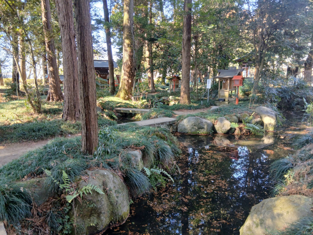 池の中に作られた小さな島には、それぞれに小祠が祀られています。