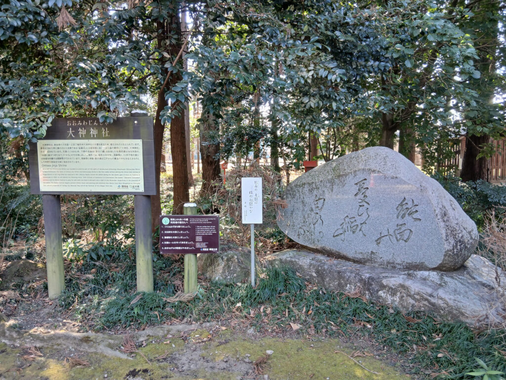 下は、大神神社の案内板と句碑です。