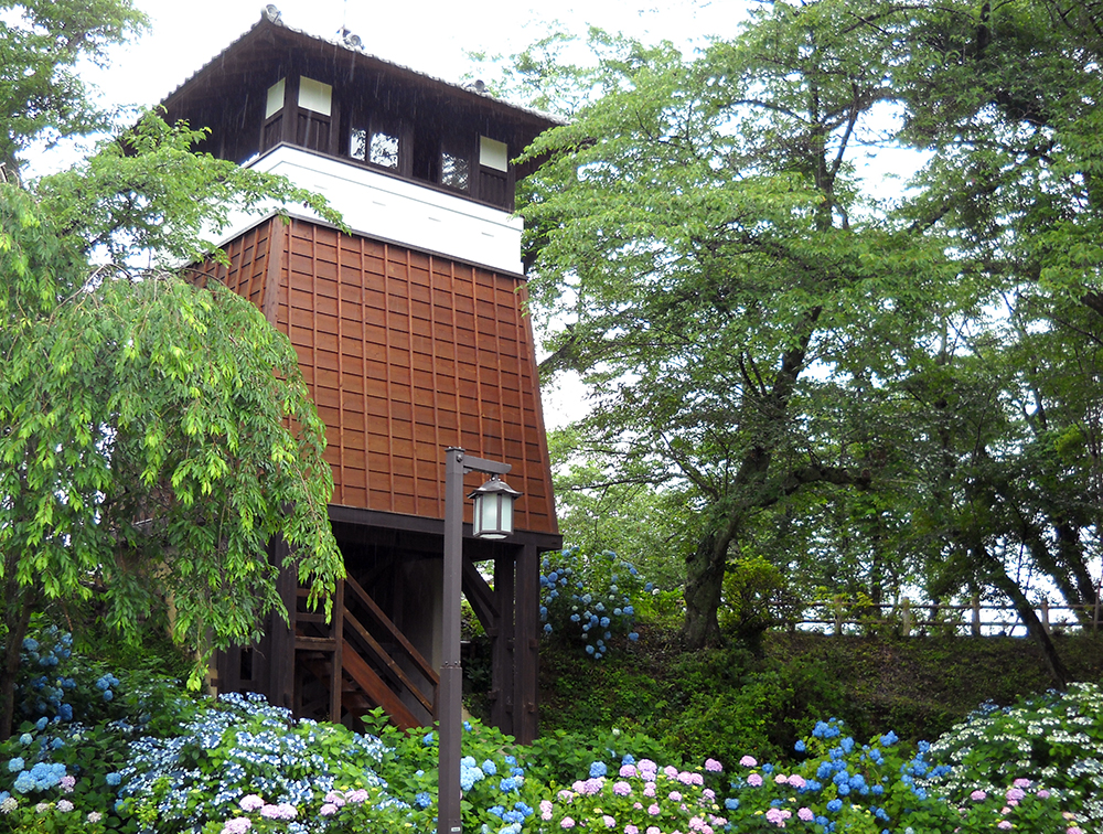 堀を埋め尽くす紫陽花。